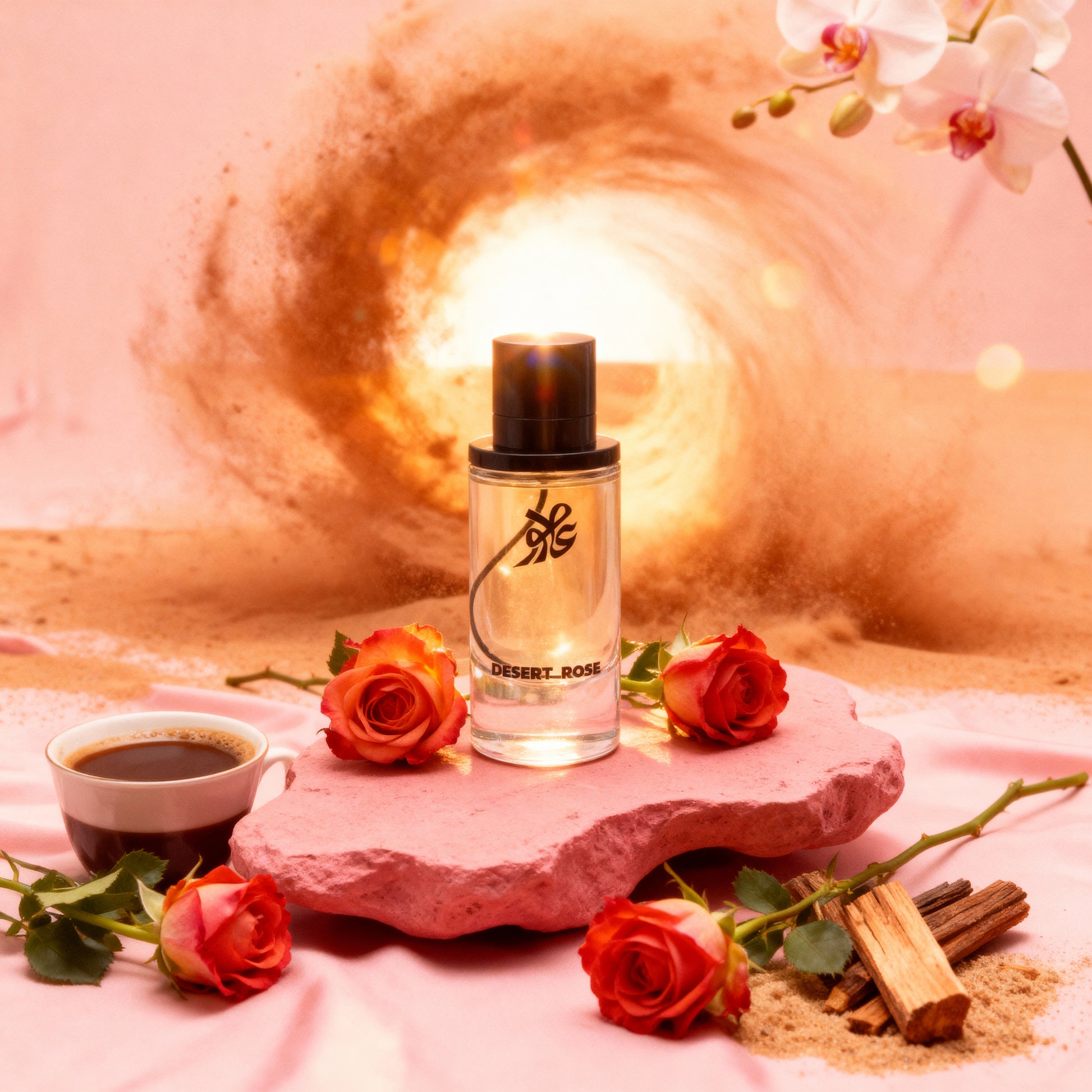 A dark, sensual bouquet of rose, coffee, incense, sandalwood, and patchouli, mysterious and alluring.